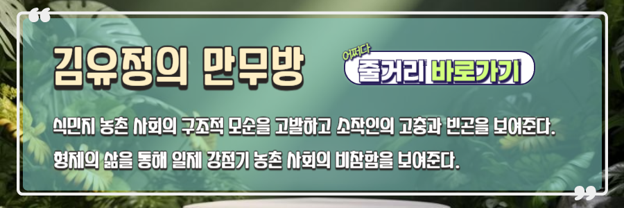 | 김유정의 만무방 줄거리 요약 제목 의미 (1) | 2024.12.16 |