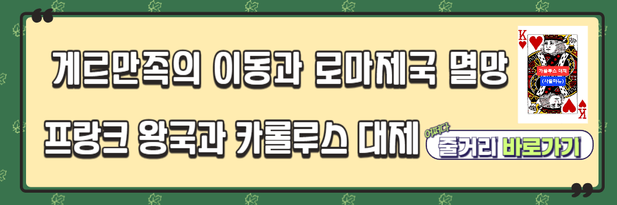 서쪽 로마는 게르만족의 이동으로 프랑크 왕국이 세워지면서 역사 속에서 사라진다(476). 서유럽은 재정분리로 황제와 교황(교회의 황제)이 있었고, 동쪽 로마(비잔티움제국)는 교황은 없지만 황제가 교황 역까지 하는 황제중심이었다.