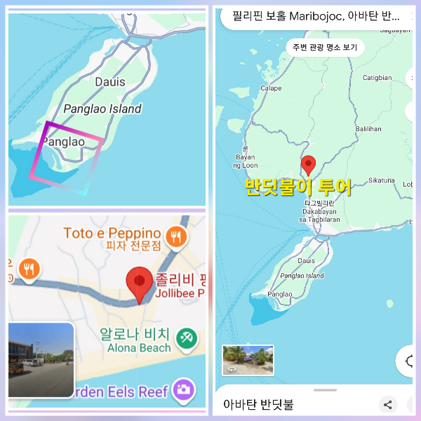 보홀 팡라오에 공항이 생겨서 얼마나 좋은지 모른다. 섬에 도착해서 섬에서 즐기면 된다. 큰 덩어리 땅으로 차를 타고 이동하면 반딧불 투어, 초콜릿 힐, 로복강 투어가 가능하다. 이동시간이 거즘 1시간씩 걸린다. 차를 타고 마을 속으로 들어가면 필리핀 느낌이 물씬 풍기고 시골같다는 정겨움이 느껴진다.