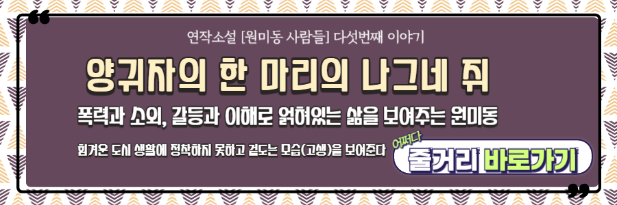 | [원미동 사람들] 한 마리의 나그네 쥐 줄거리 요약 (0) | 2024.06.15 |