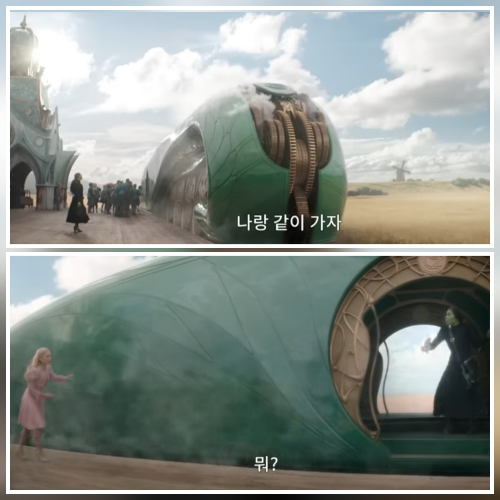 대선생님은 엘파바의 마법 능력을 또 한번 확인하며 에메랄드 도시 마법사의 초대장을 준다. 떠나는 기차역에서 갈린다는 친구들에게 발표한다. 사라진 염소 선생님을 추모하며 선생님이 부르던 이름 글린다로 개명한다는 것이다. 역시 착한 병! 좋은 게 좋은 거라고 좋게 넘어가자라는 착한 병이 도졌다.