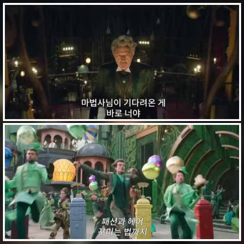 엘파바는 글린다에게 같이 가자고 제안하고 둘은 함께 에메랄드 도시에 도착한다. 그리고 숨겨진 비밀을 알게 된다. 말하는 동물들을 가축으로 전락시킨 인물이 바로 대선생님과 마법사였다. 세상에!  착한 엘파바를 위키드(뜻:사악한)로 만든 것도 대선생과 마법사이다. 시민들에게 가스라이딩 한다. 그들의 탐욕과 위선이 사회질서를 망치고 있었던 것이다.