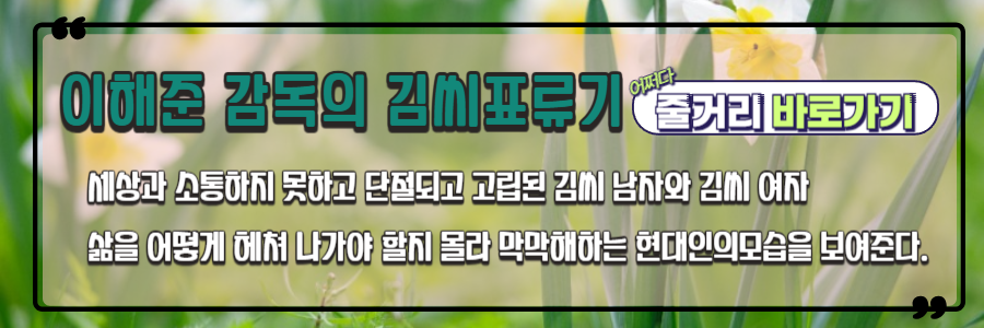 기임에게 창고란 탈출하고 싶은 공간이다. 기계 부품처럼 반복되는 일상때문에 회의와 불만이 가득한 곳, 욕망을 억누르는 곳, 무기력해지는 곳이었다. 그래서 창고 밖을 꿈꾼다. 창고 밖은 다를 줄 알았다. 문제는 창고가 아니라 기임의 성실성이었다.