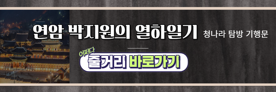 초팔일 갑신. 맑음. (정조 4년. 1780.7.8) 박지원은 판촌 형 박명원을 따라 북경사절단에 참여한다. 박지원은 만주 요동 벌판의 광활함을 보고 현기증이 날 정도로 감동받는다. 광대한 자연속, 작은 인간임을 깨닫는다. "좋은 울음 터로다. 한바탕 울어 볼 만하구나!" 하며 박지원만의 창의적 표현으로 감탄한다.