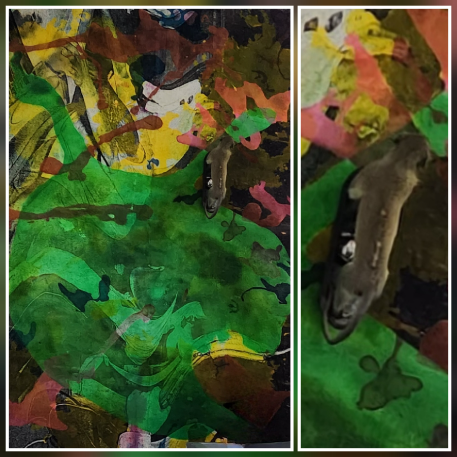 이 작품은 소리를 그림으로 표현했다고 한다. 흰 바탕에 작은 물결들은 소리로 인해 생기는 감정들을 의미한다고 한다. 보는 각도에 따라 흰색이었던 그림은 회색으로 보인다. 사람의 감정은 다양하고 감정에 따는 소리도 다양하다. 소리를 듣고 느끼는 사람의 감정 또한 다양하다. 작가의 세계는 참 신기하다.